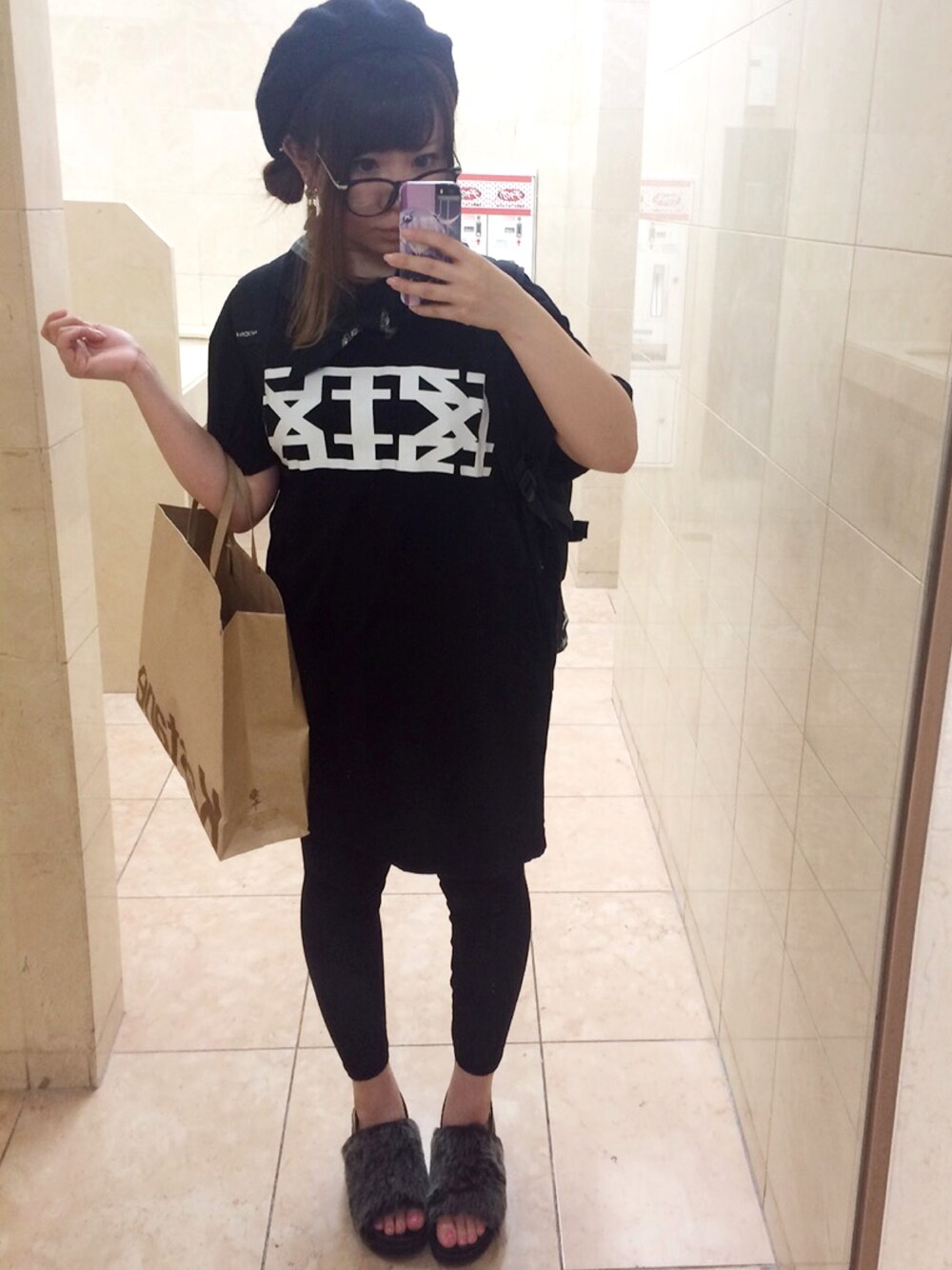 これからDJイベント遊びに行くからラフなかんじで〜〜🎉🎉 KTZのTシャツはコレクションスタッフ仕様らしくてGR8だけで販売してる限定品らしいです〜〜🐧🐧 そして安定のもふもふサンダル🐤🐤