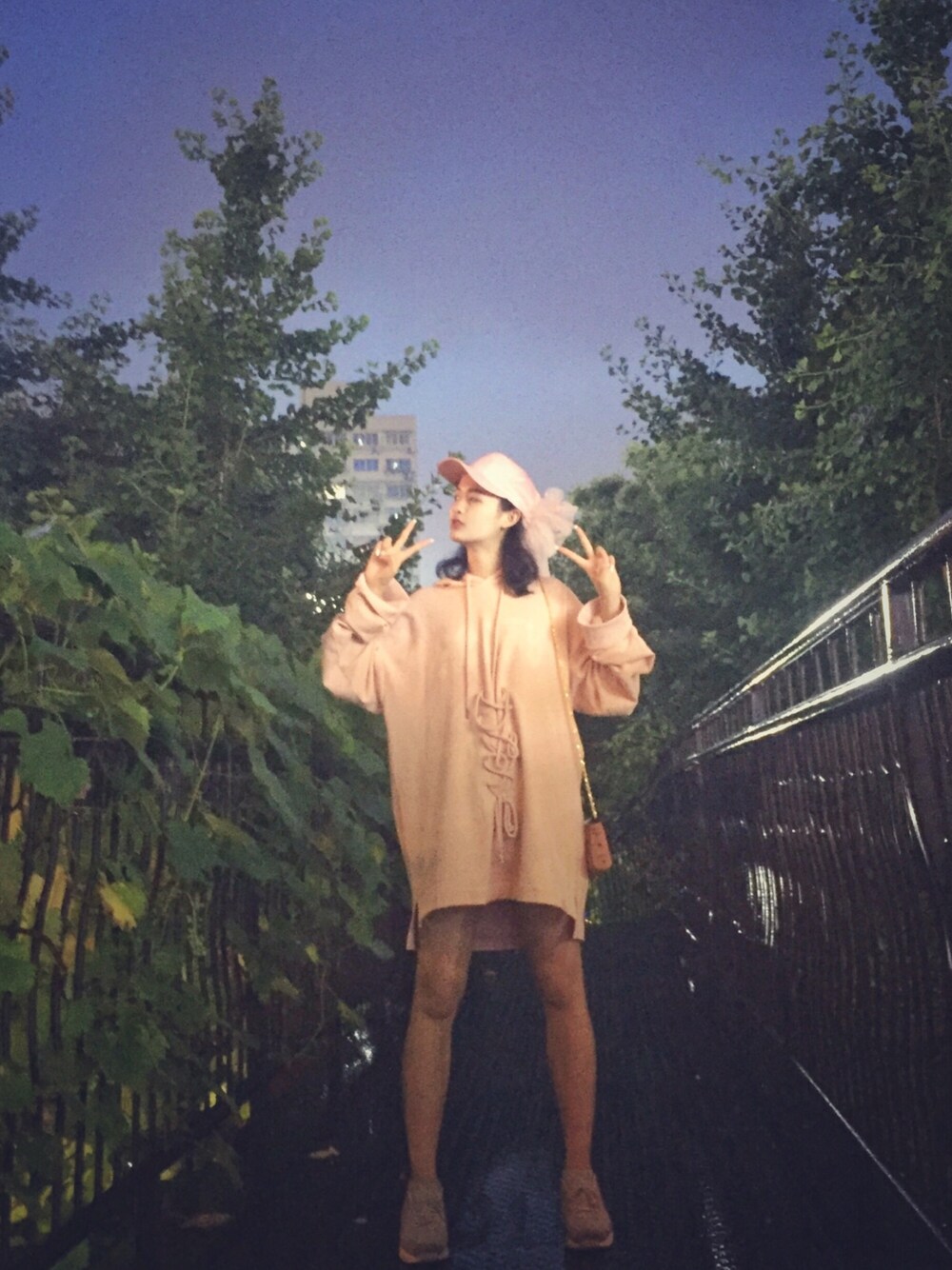 粉色系小公主 帽子后面是纱面蝴蝶结 大大的长款卫衣裙 更显娇小可爱 活泼十足