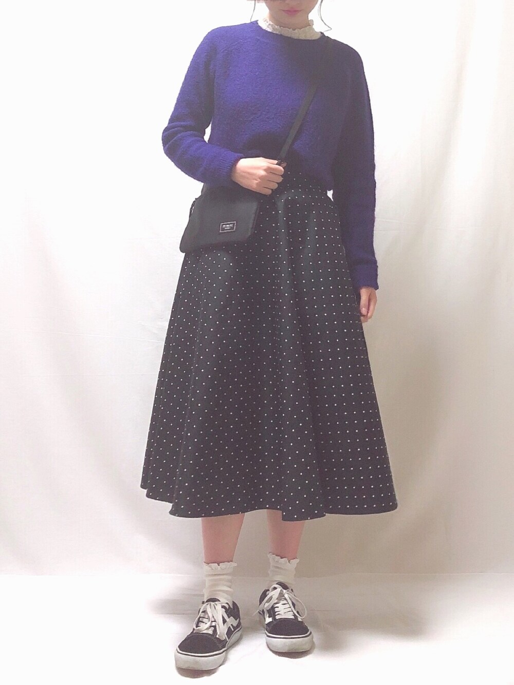 こんばんは~!🌟みるくです🐮🍼 今日は最近ハマっているUNIQLOの500円のドットのスカートに青?青紫?のセーターを合わせてみました~!!(笑) コーデに使っている色は青紫、白、黒で3色なのでとてもシンプルだけど、オシャレに見えるようなそんな感じのコーデを目指しました🐡🐡 セーター いつ買ったかは分からないのですが、チクチクせず、とても着やすいです🐾 スカート 500円で買いました🦐🦐 新品で、UNIQLOで、ボリュームスカートで、ドットで使い易いのに500円という価格に驚きでした笑 店員さんに聞いてみると、去年のもので、売り場が無くなってしまったからと話されていました! 裏地はなく、綿98パーセントなのでシワは凄くつきやすいですが、500円なら買って損は無いと思います🙆 フォルダ公開してます!!是非見てください🐶🐶💖 インスタのフォローもよろしくお願いします🐙🐙 また来てね〜💖