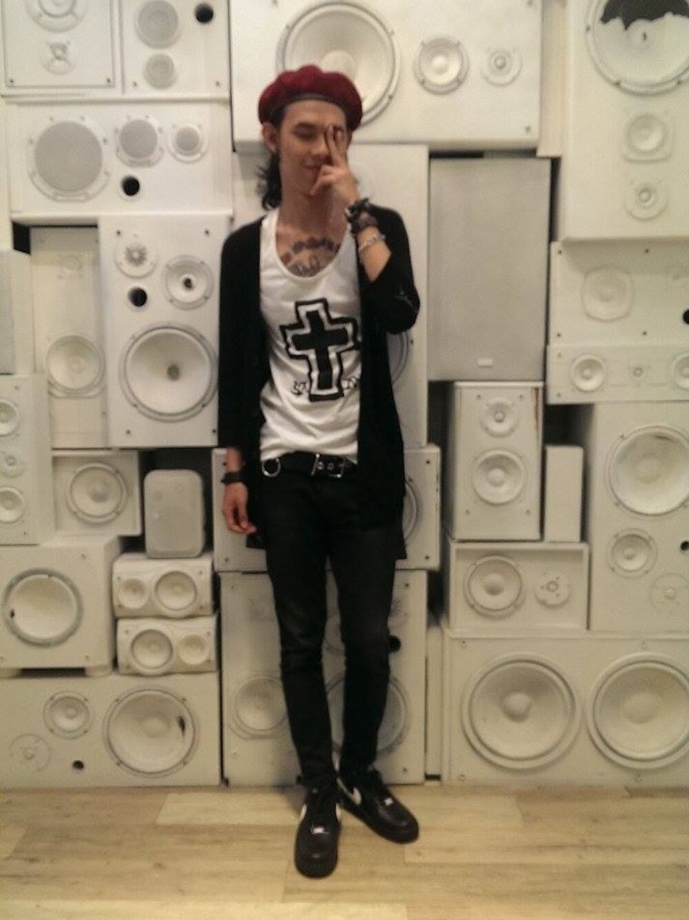 梁士華MONTEのタンクトップ「Evil cross tank top」を使ったコーディネート