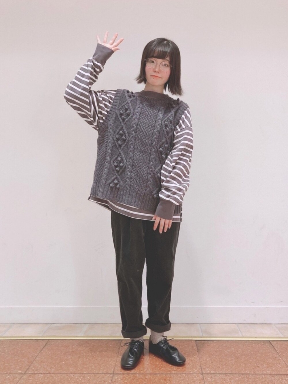 ご覧いただきありがとうございます! ・前回投稿のコートの中のコーディネートです! ・ベストにシャツ/ブラウスを合わせるのが王道だけど、Tシャツを合わせてカッチリしすぎない程よく綺麗めに..!