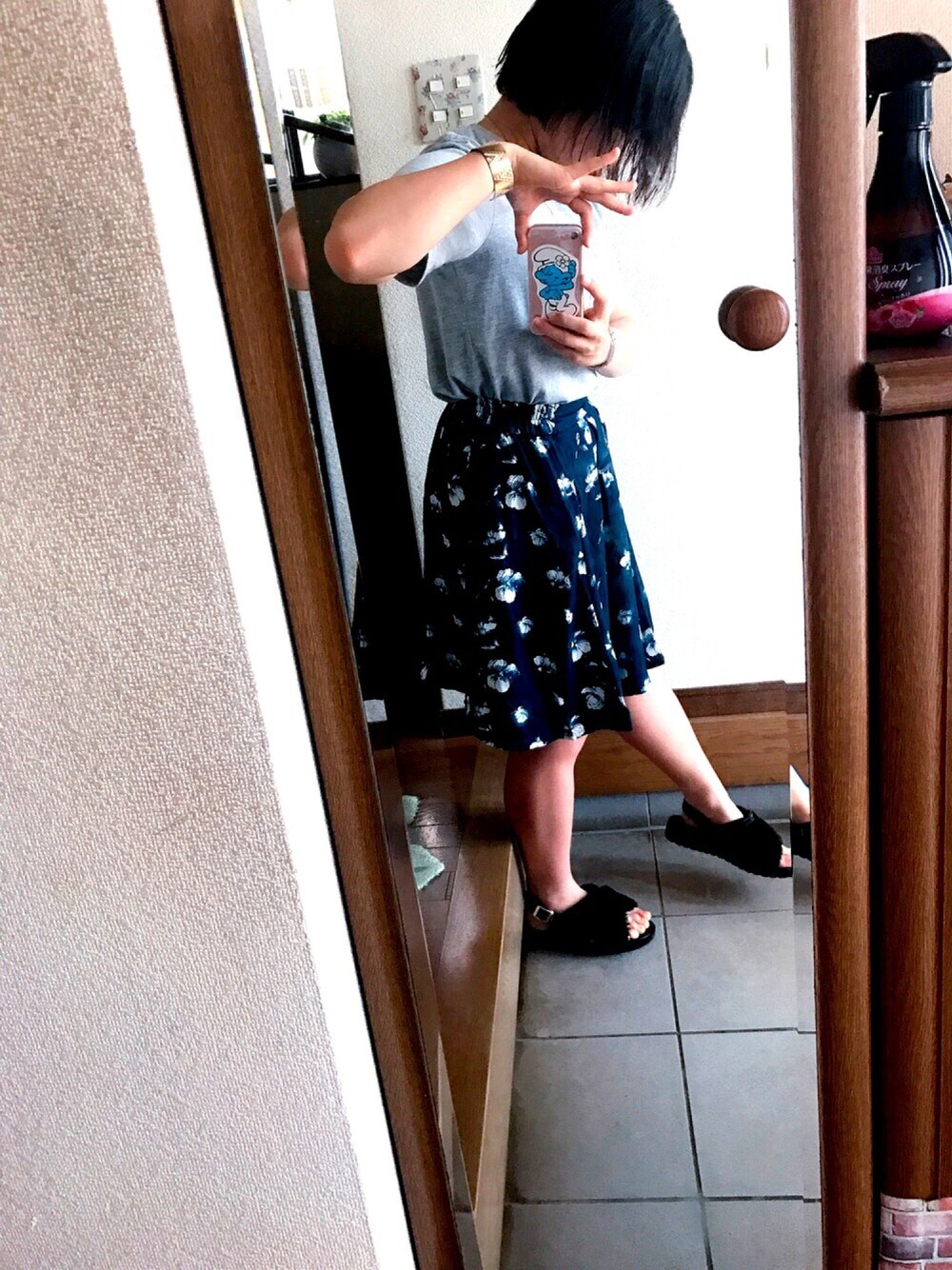 秋トレンド 大人め花柄♡ シンプルなので小物をジャラジャラ バングル時計ネックレス