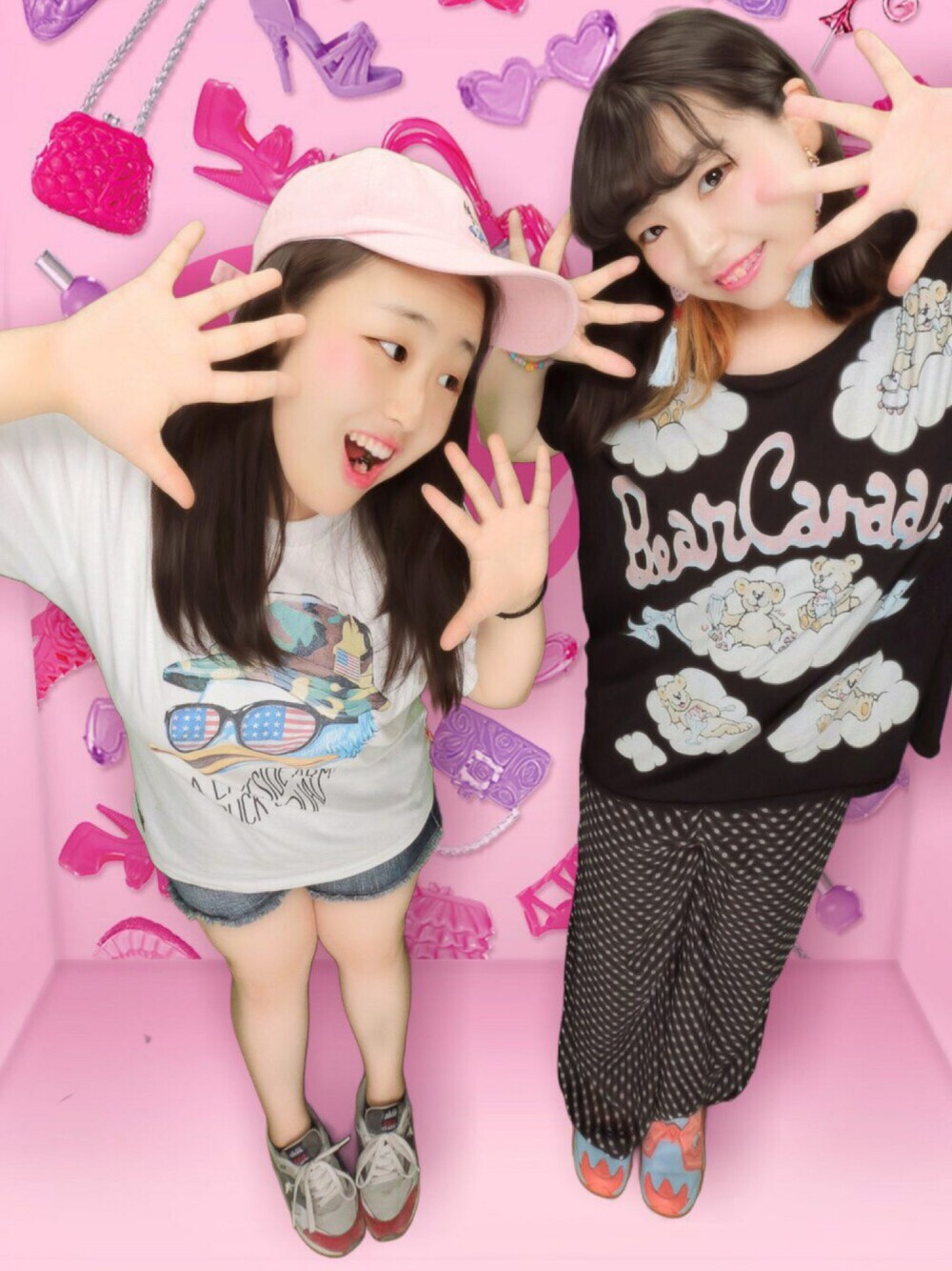 bubblesのパンツずっと前に買って初めて履いたらめっちゃ可愛いけど裏地が付いててちょう暑かったです😡💦 黒ベースにパステルのコーデがすき💕
