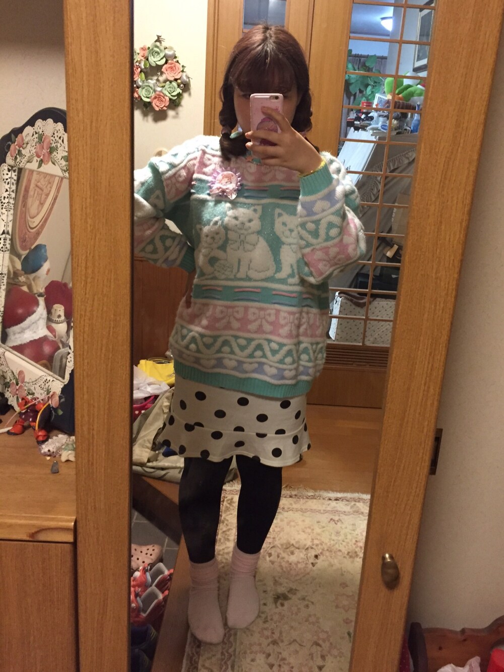 今季初のセーター! ねこちゃん🐱のファンシーセーター超可愛くてまじでお気に入りです!♡
