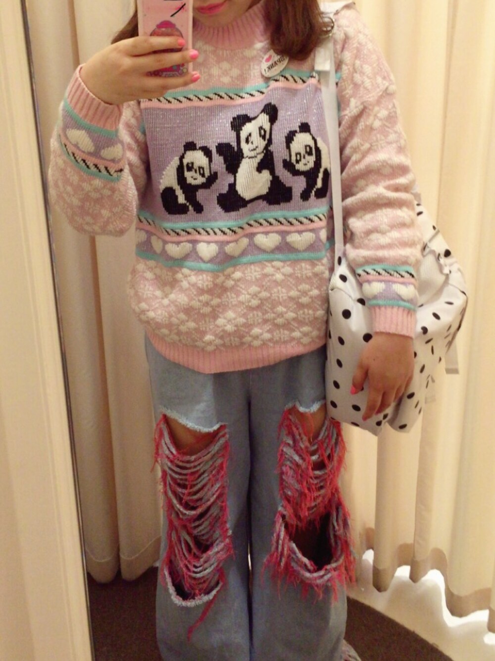 パンダ🐼のファンシーセーターをGETしたので、早速着てみました💓 パンダちゃんとってもかわいい〜〜💕💕