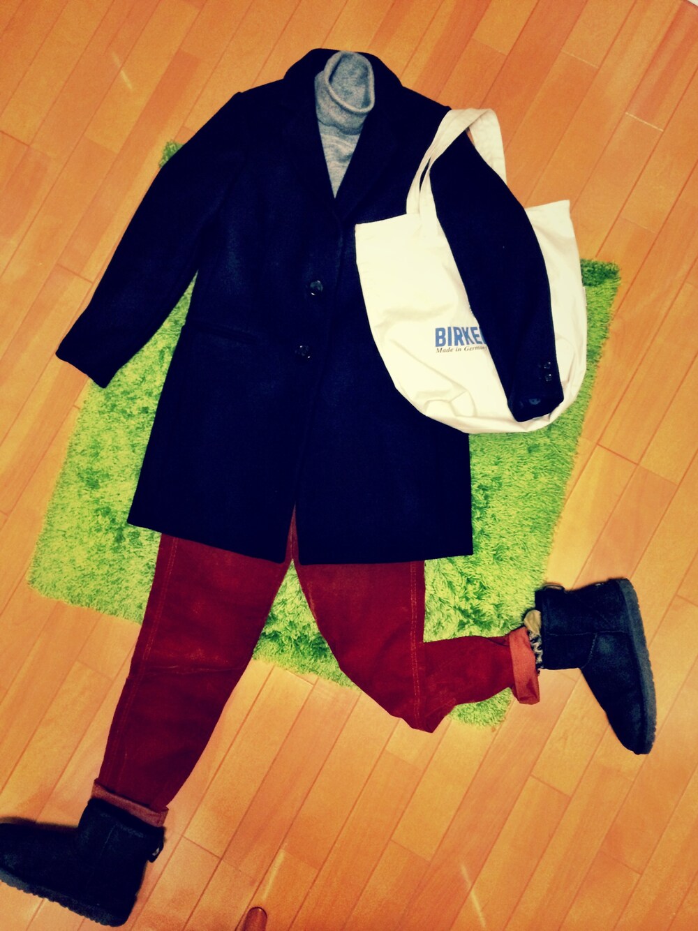 寒くなって来たので、慌ててコートを出しました。 パンツもコーデュロイで完全防備。