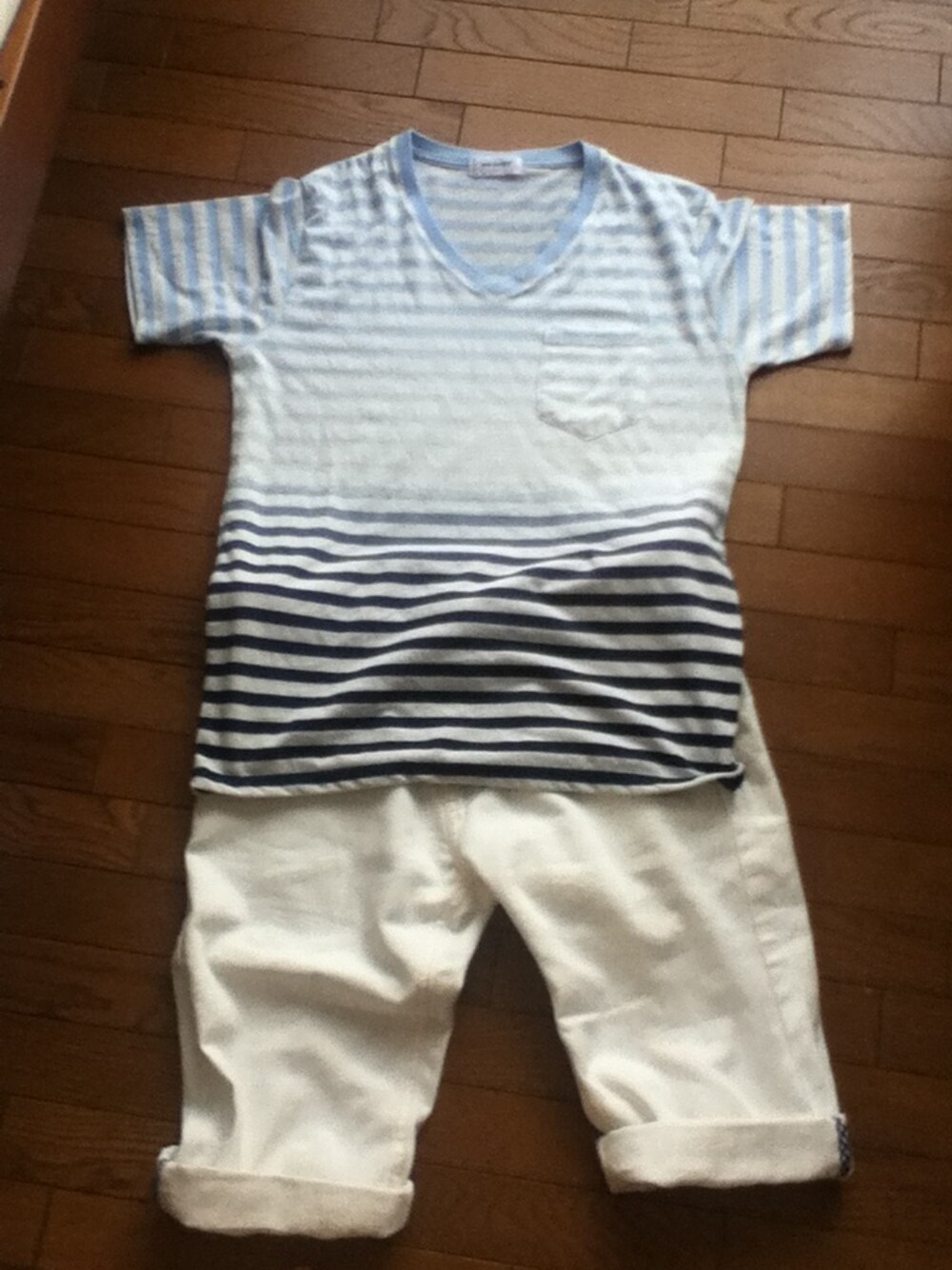 初投稿しましたーー。 14歳の中3ですん‼ 目にとまった方、よろしければフォローよろしくです(^o^)/ さて、このコーディネートは今日買ってきた白のハーフパンツとストライプシャツです‼ 青のサマーカーデも買いたかったんですが、ありませんでした(^^;; またひまと在庫と金があれば探して購入したいと思いますw 夏休みも半分終わりましたが、アウトドアなどでもファッション楽しみたいですね‼