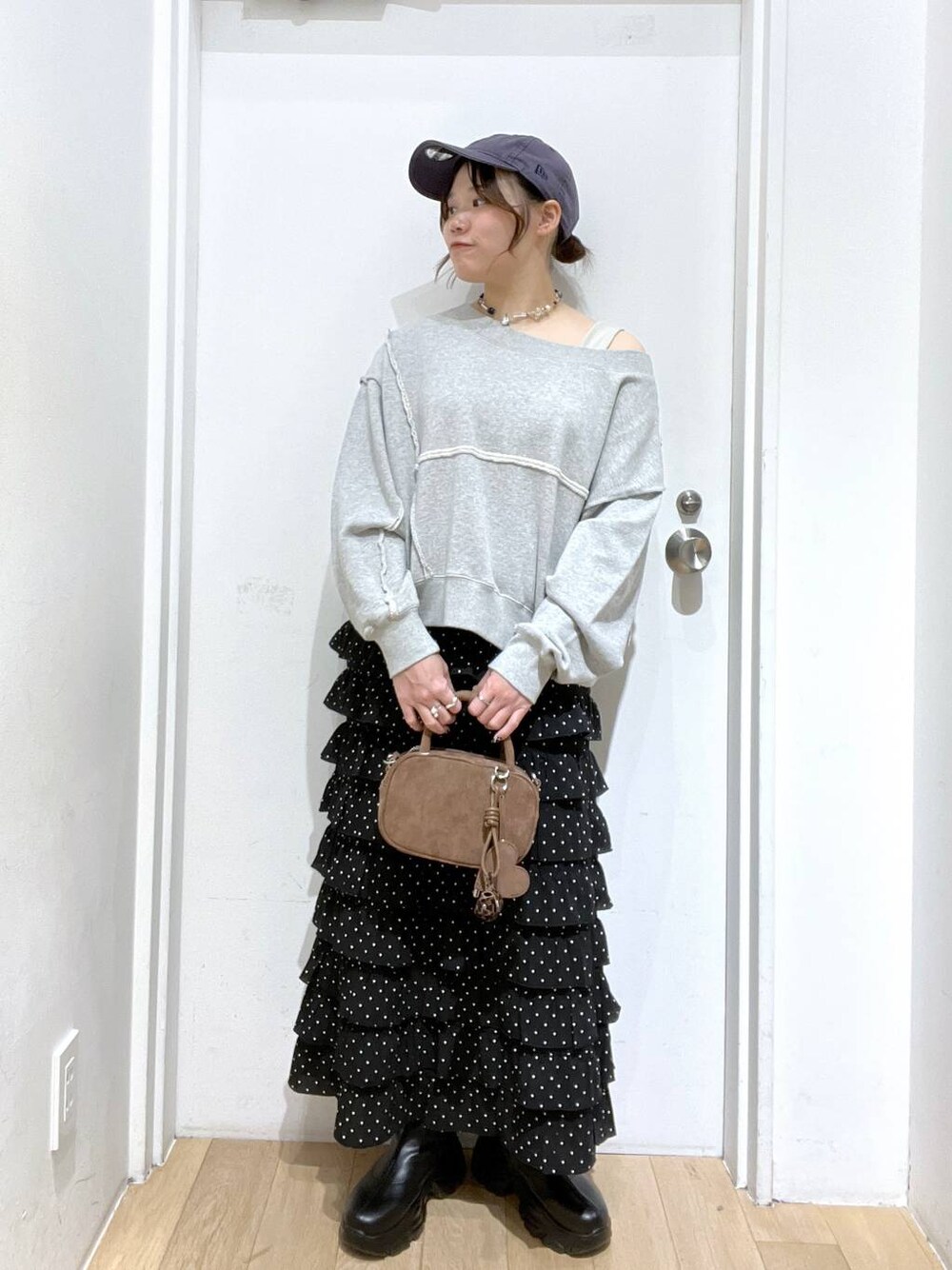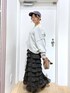 投稿ご覧頂きありがとうございます❣️ 大人甘めカジュアル💖 リメイク風になってるトレーナーは、首元そのままでもOK!! 少しオフショルにするのがオススメです☺️✨ スカートはフリルが太く見えるのでは??と思われがちですが、これはフリルが細かいので逆に細く見えちゃいます!! 是非見てみてください👀✨