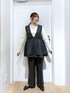 投稿ご覧頂きありがとうございます❣️ キレイめコーデ🥂✨ フリルが2段あるので腰周りをしっかりカバーしてくれるベストです!前にチャックがついているので、開けたスタイルでジレ風にも着回しが可能です!!