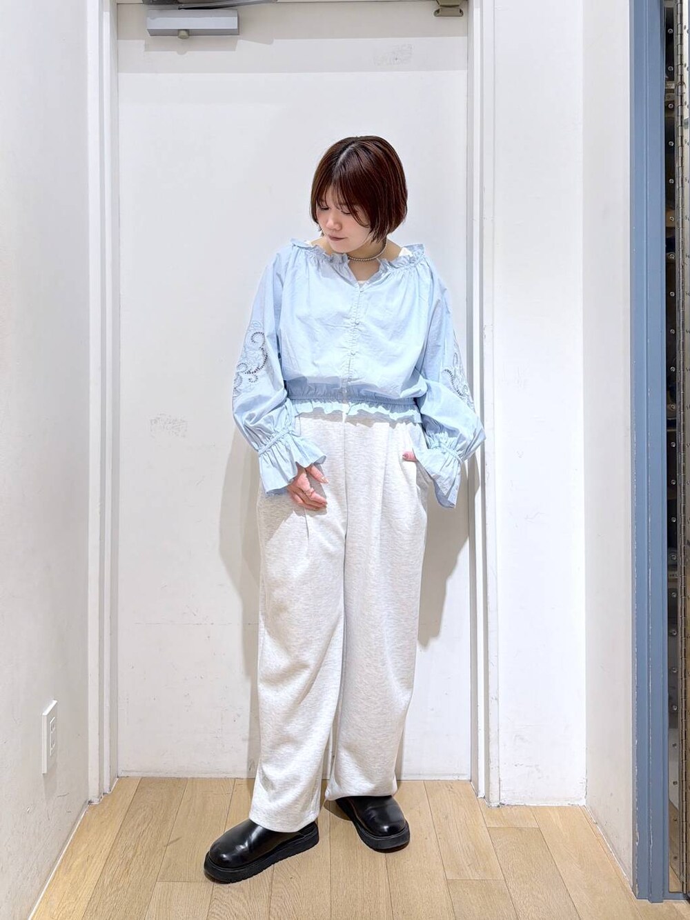 投稿ご覧頂きありがとうございます❣️ 春コーデ🌸🩵 ◎トップス 腕に刺繍のデザインと程よくゴムで閉まってるので、春らしいブラウスと骨格ウェーブさんでも着れるブラウスになります✨️デニム合わせでカジュアル系にスカートなどでキレイめにも着れます!! ◎ボトムス コクーンの形のスウェットなので、腰周りカバーしつつ綺麗なシルエットに着こなせます!!ブラウスやポロニット系と合わせるとパジャマ感なく着ていただけます✨️ 他の投稿も見てみてください👀✨