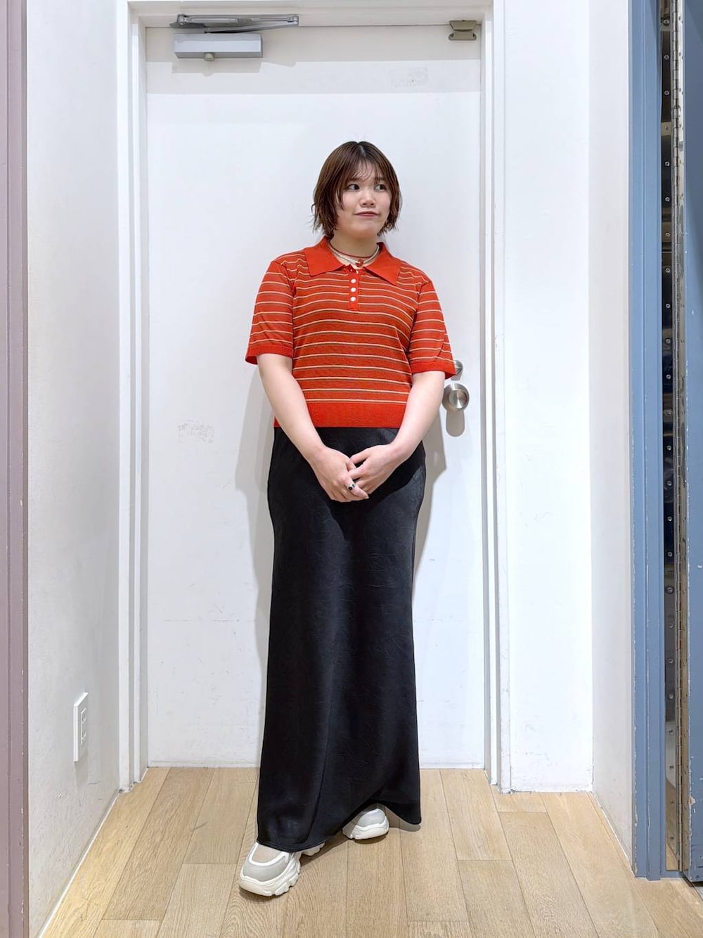 ももみん(LOWRYS FARM イオンモール高岡)のスカート「ストレッチサテンスカート 290120」を使ったコーディネート
