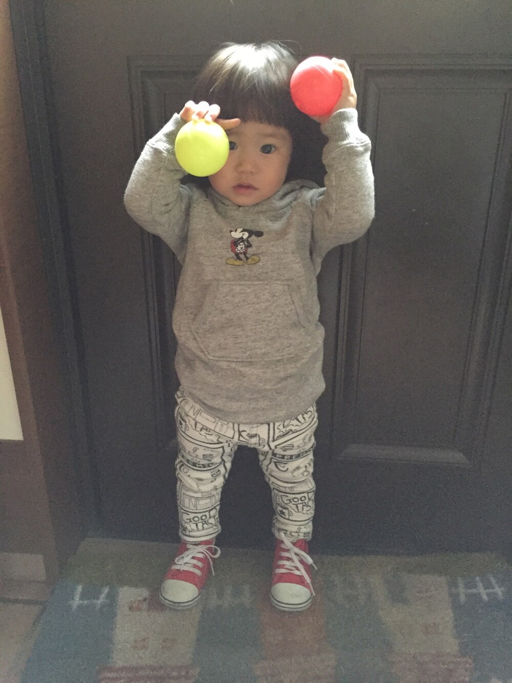 今日のお出掛けのお供はボールちゃん🎾 支援センターに遊びに行くってゆうのに😥 保健師さんが踊りや歌をやってくれるのにウチの娘だけ無。 人見知りだな〜💧私に似て。