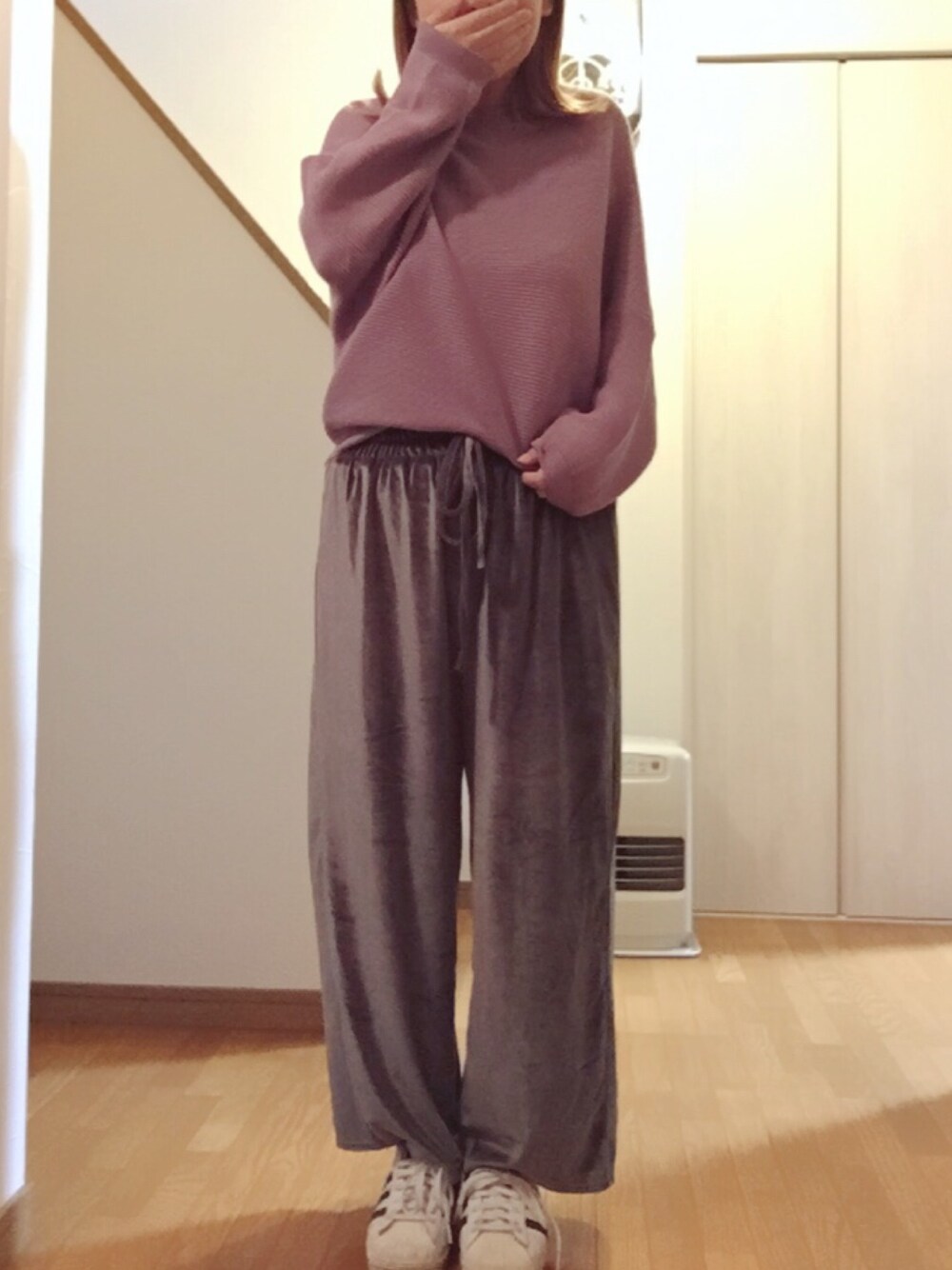 出産後間もないのでおうちコーデ! パープル×グレーが好きです💓