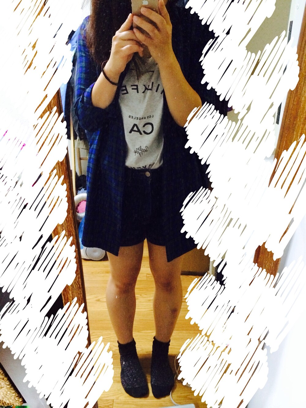 チェックシャツ#g.u Tシャツ#MILKFED ショーパン#古着 秋だー!