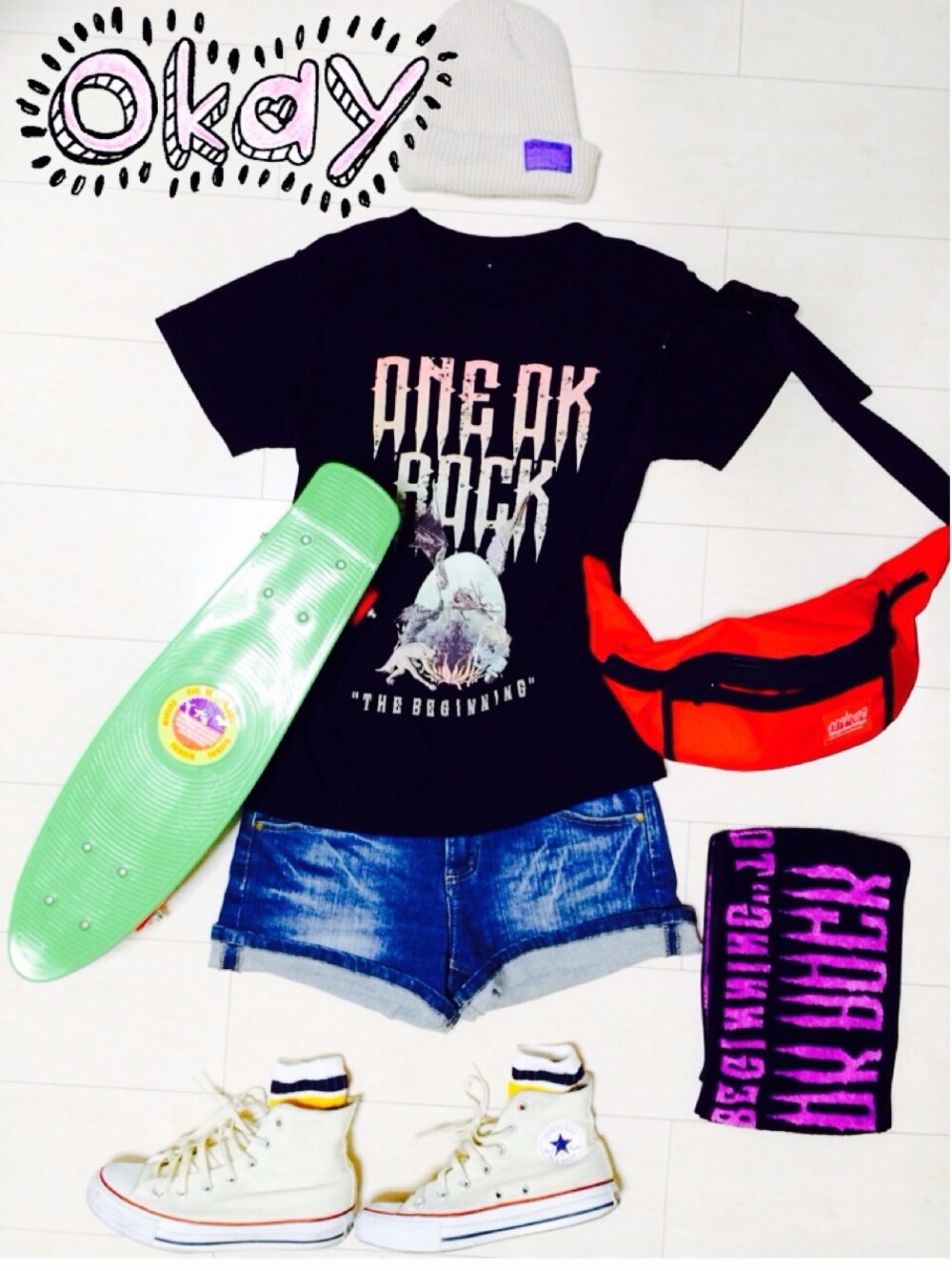 Tシャツ:バンドTシャツ パンツ:ozoc シューズ:converse バッグ:ManhattanPortage スケボー気分☀️ 夏フェス行きたい 番地にワンオク来ない 番地フェスに来てください🙏