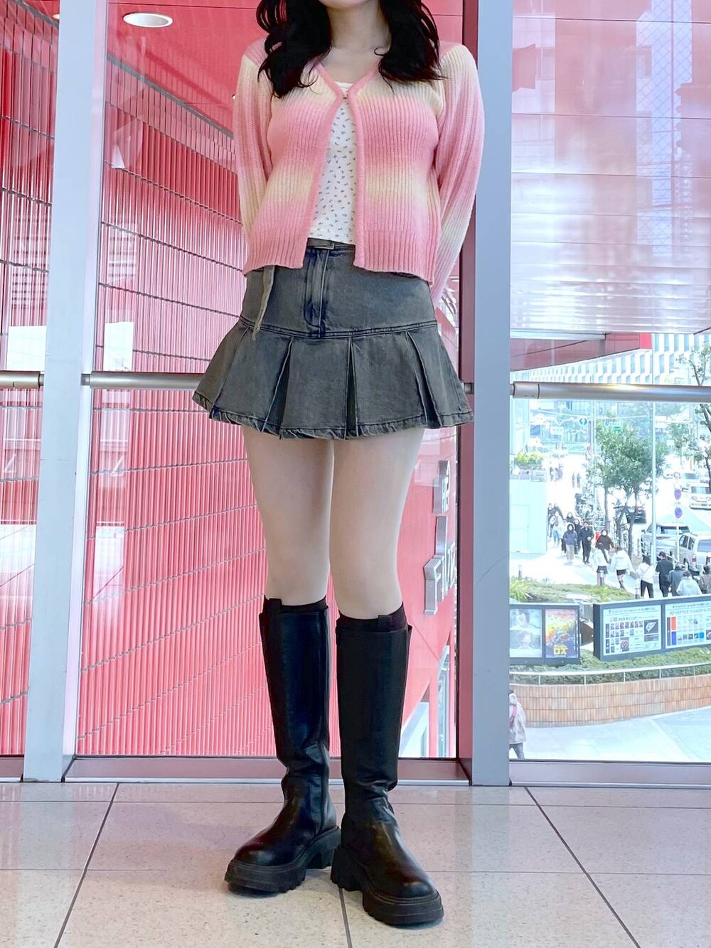 グラデーションデザインのニットカーデです!! ピンクと黄色の配色が春らしくてとっても可愛いです〜🌸🌼