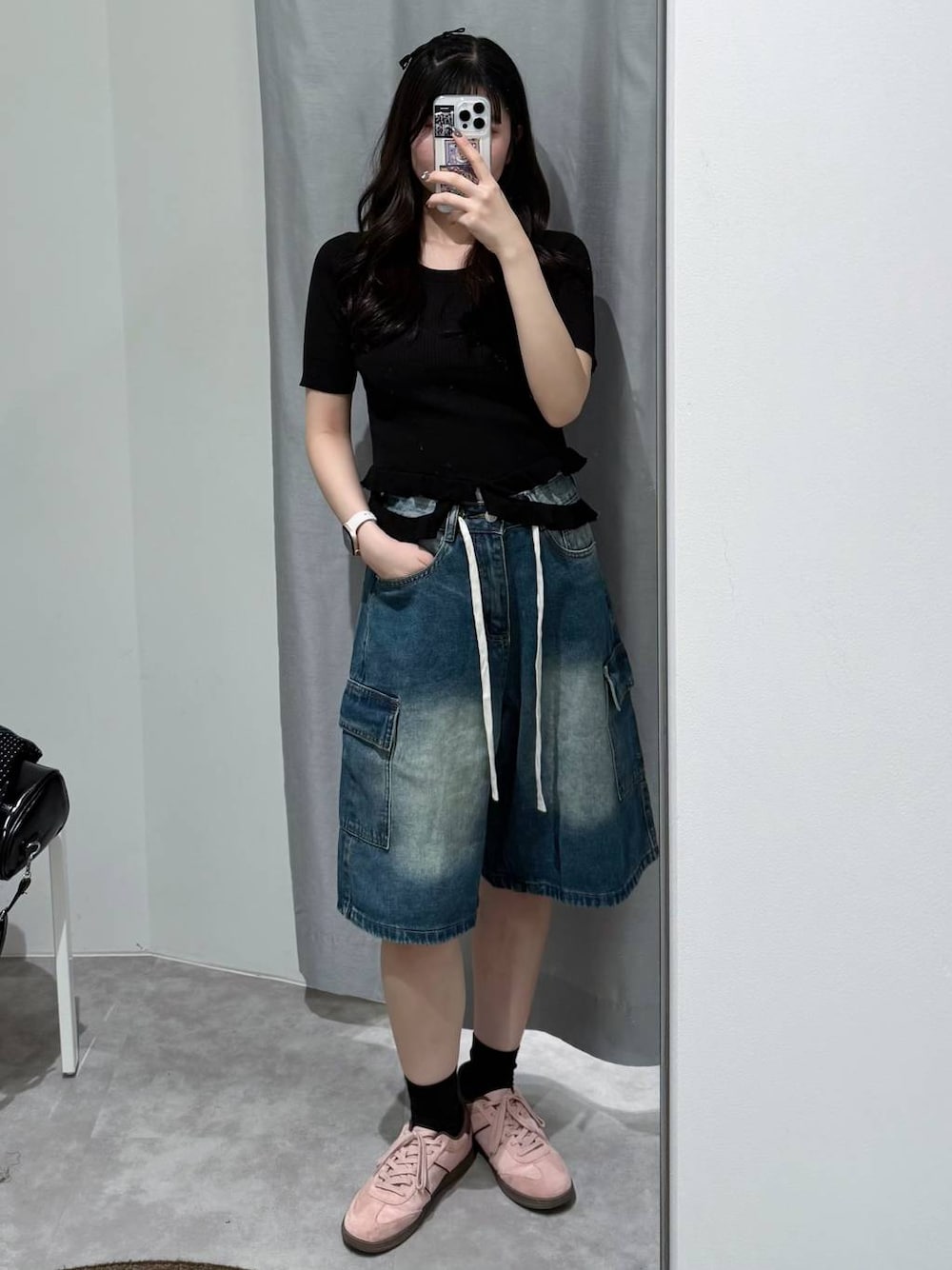 𝑀𝑜𝑚𝑜(ALAND ソラリアプラザ)のデニムパンツ「3.3 Field Trip/ロープハーフデニムパンツ」を使ったコーディネート