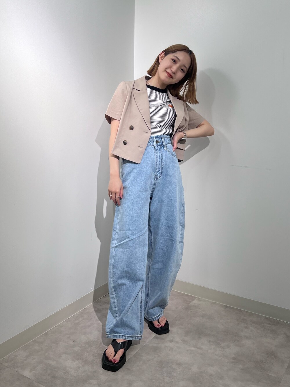 なつき(FREE'S MART新宿ルミネエスト)のテーラードジャケット「【Sシリーズ対応】◆[セットアップ対応]綿麻ショート丈ハーフスリーブジャケット」を使ったコーディネート