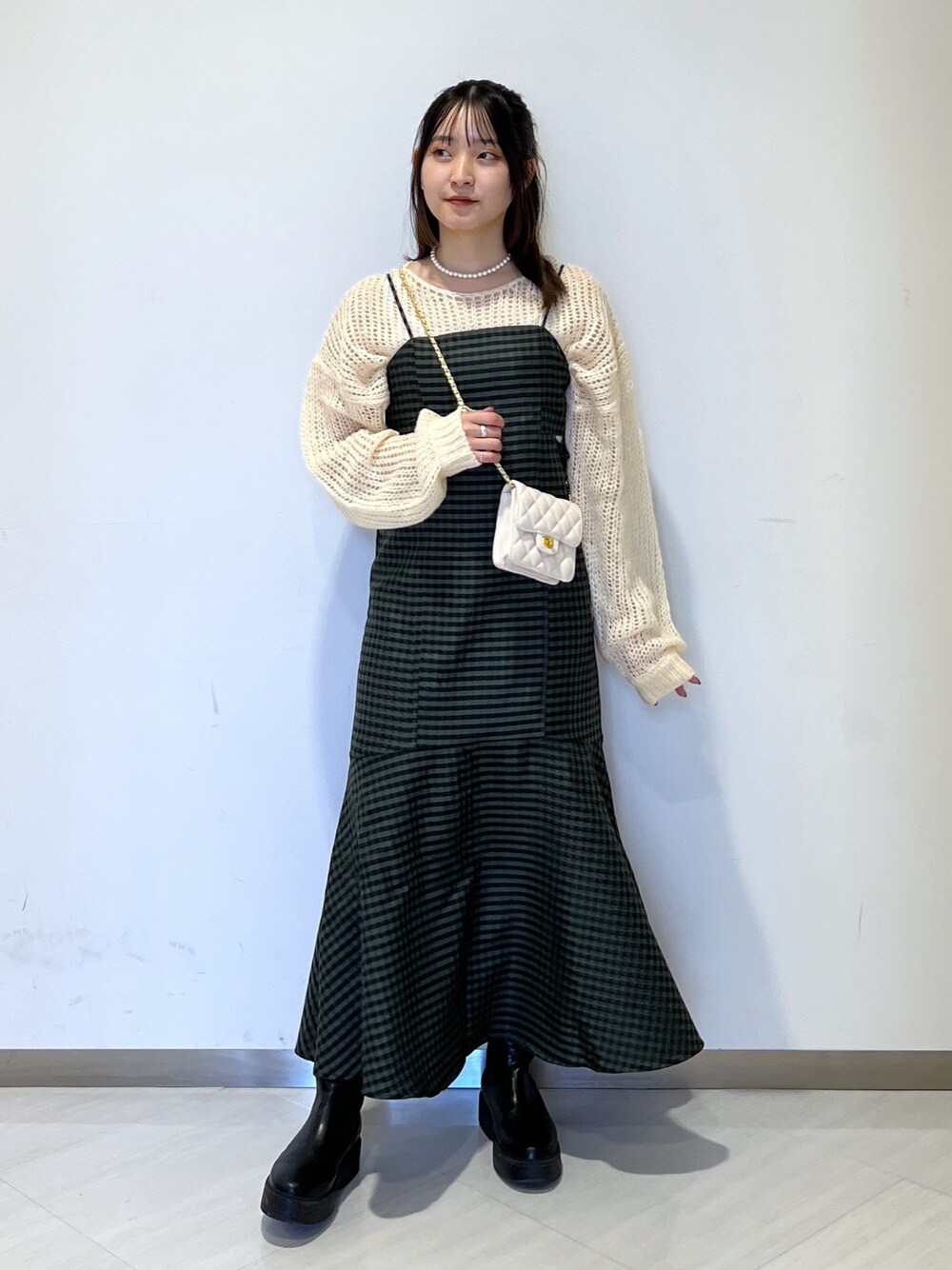 モヘアニットをインナーとして着るのオススメです☺️このワンピも形綺麗で可愛い〜