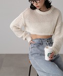 なつき(FREE'S MART新宿ルミネエスト)のニット/セーター「ショート丈メッシュニットプルオーバー」を使ったコーディネート