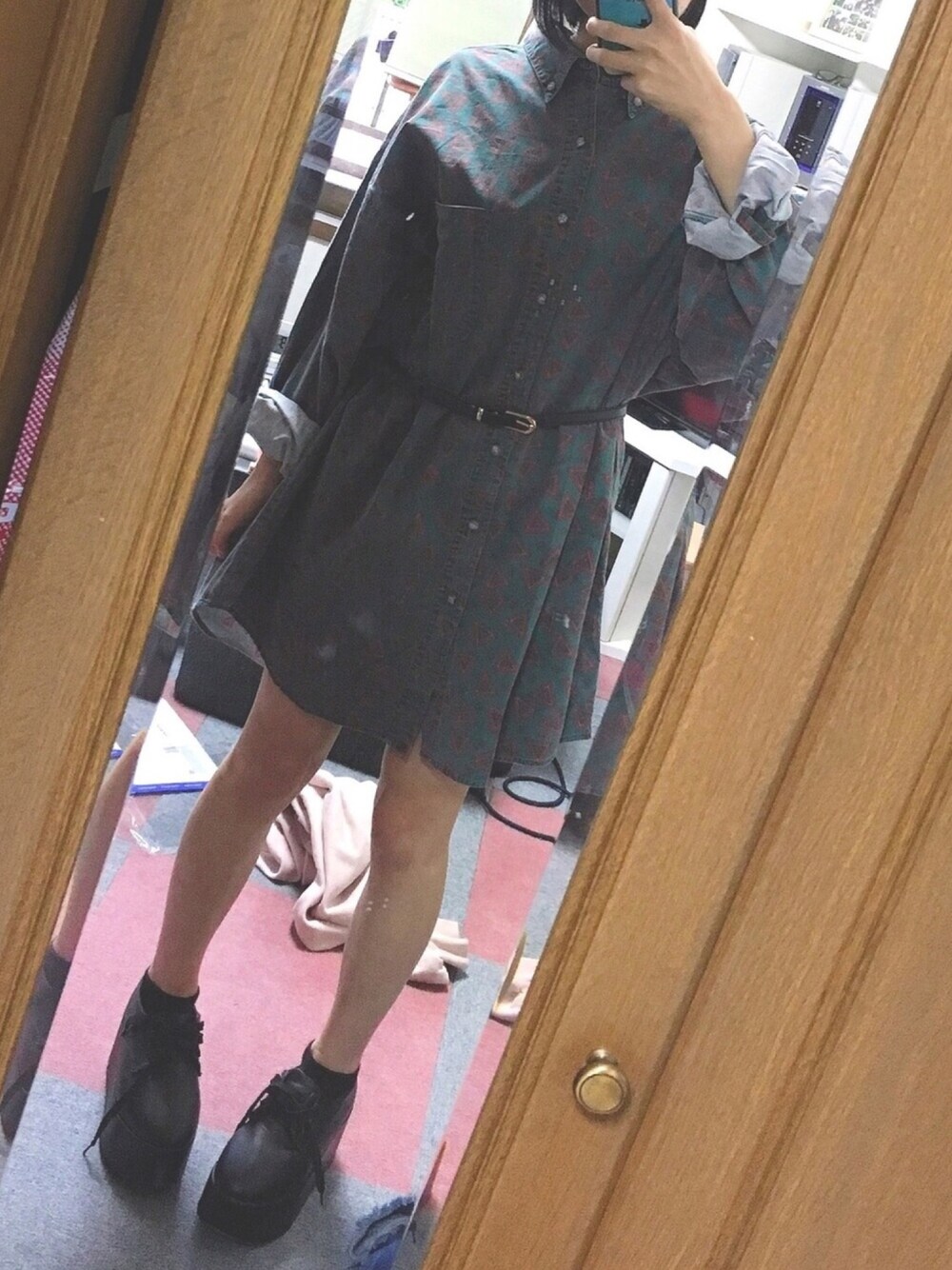 一目惚れした柄シャツ🙌 ・ 想像よりおっきくてワンピとしても着れそう。