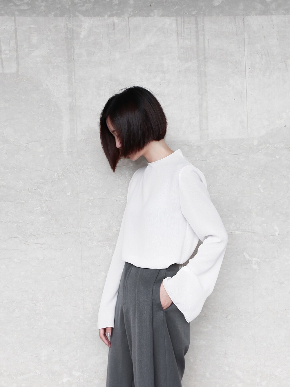 ホワイト系のトップスを着用したレディースの秋コーディネートの1枚目の写真