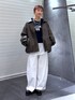 みっきぃ(JEANASIS 京都ポルタ)のブルゾン「ヴィンテージパファーレザーブルゾン【中綿入りで冬の防寒も◎】/282684」を使ったコーディネート