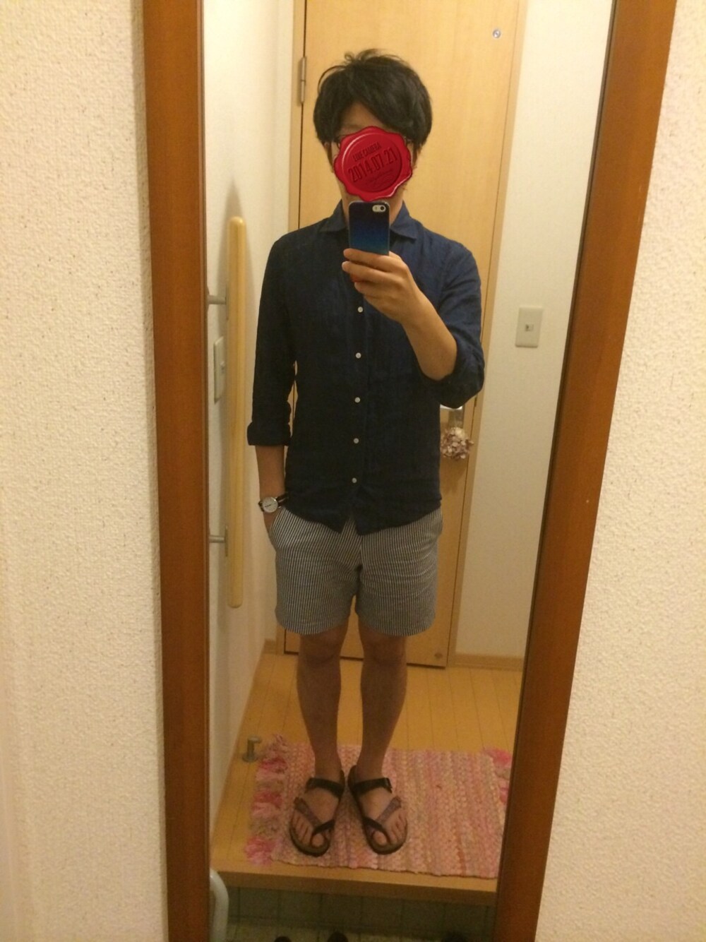 シャツ脱いだら ミッキーTシャツ登場のいやらしさ。 サンダルは最近好きなペイズリー柄。 これで桃狩り行きます。