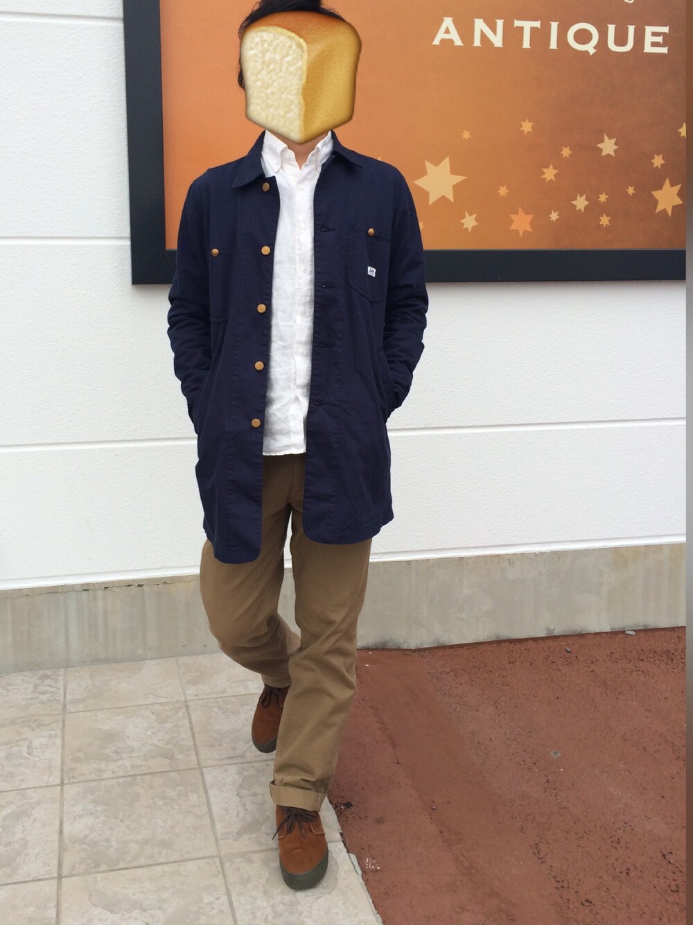 初めてWEAR用の写真を妻に取ってもらいました。 パン屋さんの前で。 今まで玄関で自撮りしてたので 暗かったのですが 今日は外で撮ったのでいくらか明るいし 一歩前に歩き出してる写真になったり いつもと雰囲気違って良いもんだなと 思いました。 パン屋さんの前で。 恥ずかしかったなぁ。 テーマは 食パンマン様の休日です。 ではまた。