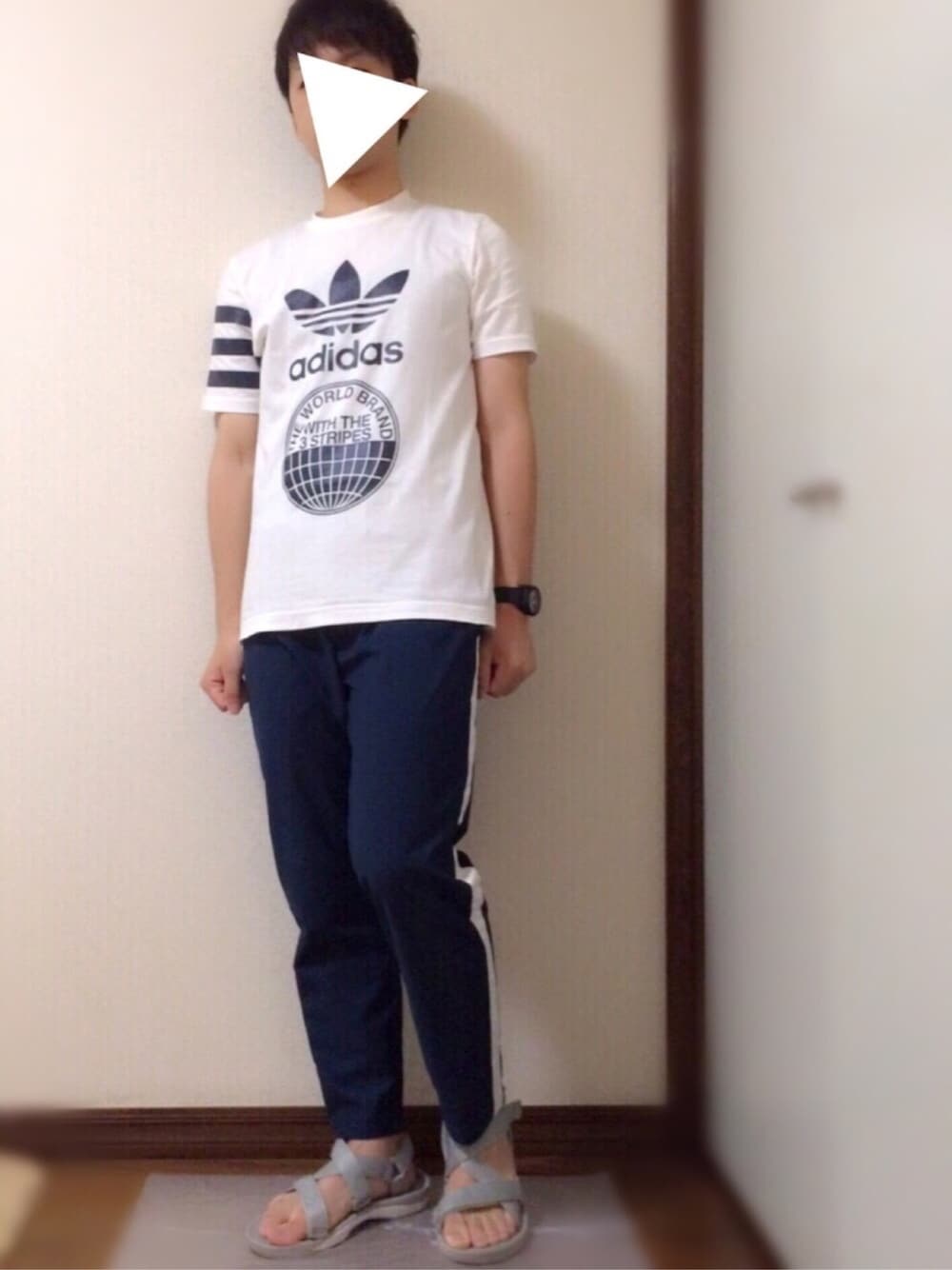 初めてまして! ばーくんと申します! 前もWEARをやっていましたが、アカウントを作り直しました! ぼちぼち更新していけたらと思ってます😊 一人暮らしなので写真はセルフタイマーで撮ってます😂 好きなadidasのTシャツに、ラインパンツを合わせてみました! よろしくお願いします🙏🏼