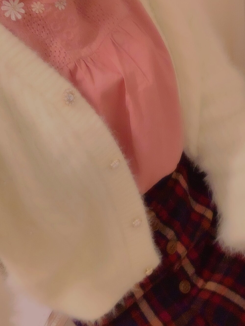 今日は春っぽい色で合わせたよ❁︎ シャツ に自分でアレンジして お花もつけてみました♪