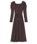 みみみのワンピース「リボンベルト付パワショルニットプリーツワンピース」を使ったコーディネート