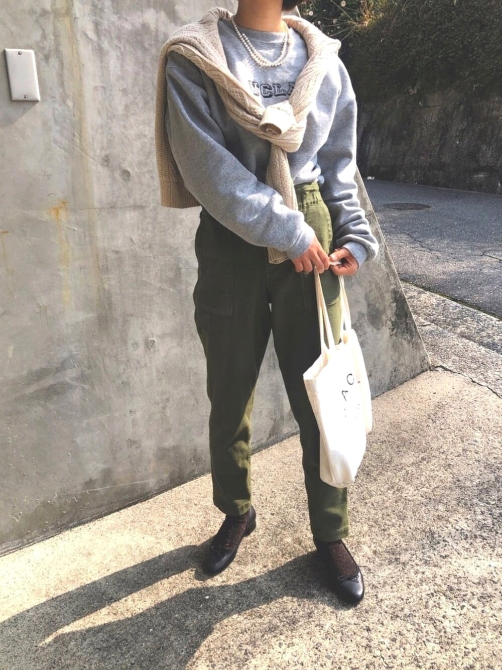 初めての投稿です🌿 ドミンゴのベイカーパンツ形が綺麗でお気に入り🤎 マーガレットハウエルのバレエシューズも5㎝ヒールだけどクッション性があって疲れなくて大好きです☺︎ 肩掛けはUNIQLOで300円でgetしました!お金のやりくり頑張ってます、、💦