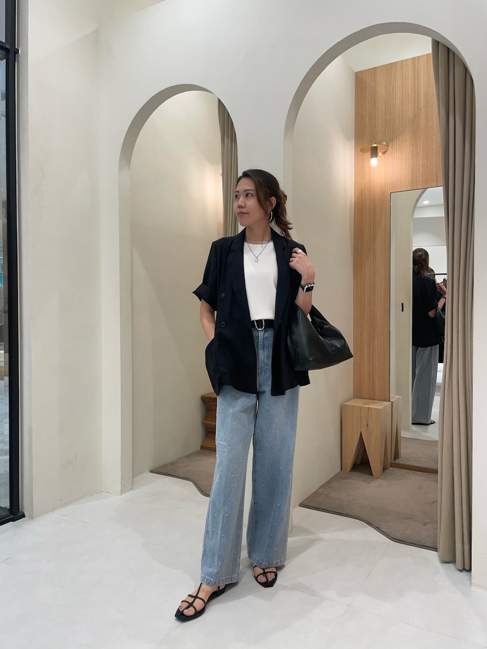 mori_lemage(CAPRICIEUXLE'MAGE姫路店)のテーラードジャケット「【夏の羽織りに◎】シアー半袖ジャケット」を使ったコーディネート
