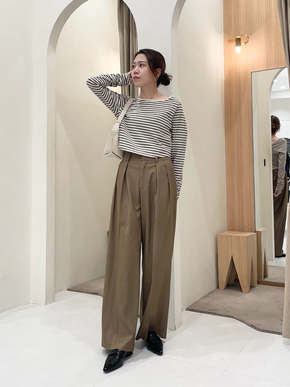 mori_lemage(CAPRICIEUXLE'MAGE姫路店)のTシャツ/カットソー「バックUネッククロップボーダーTシャツ」を使ったコーディネート