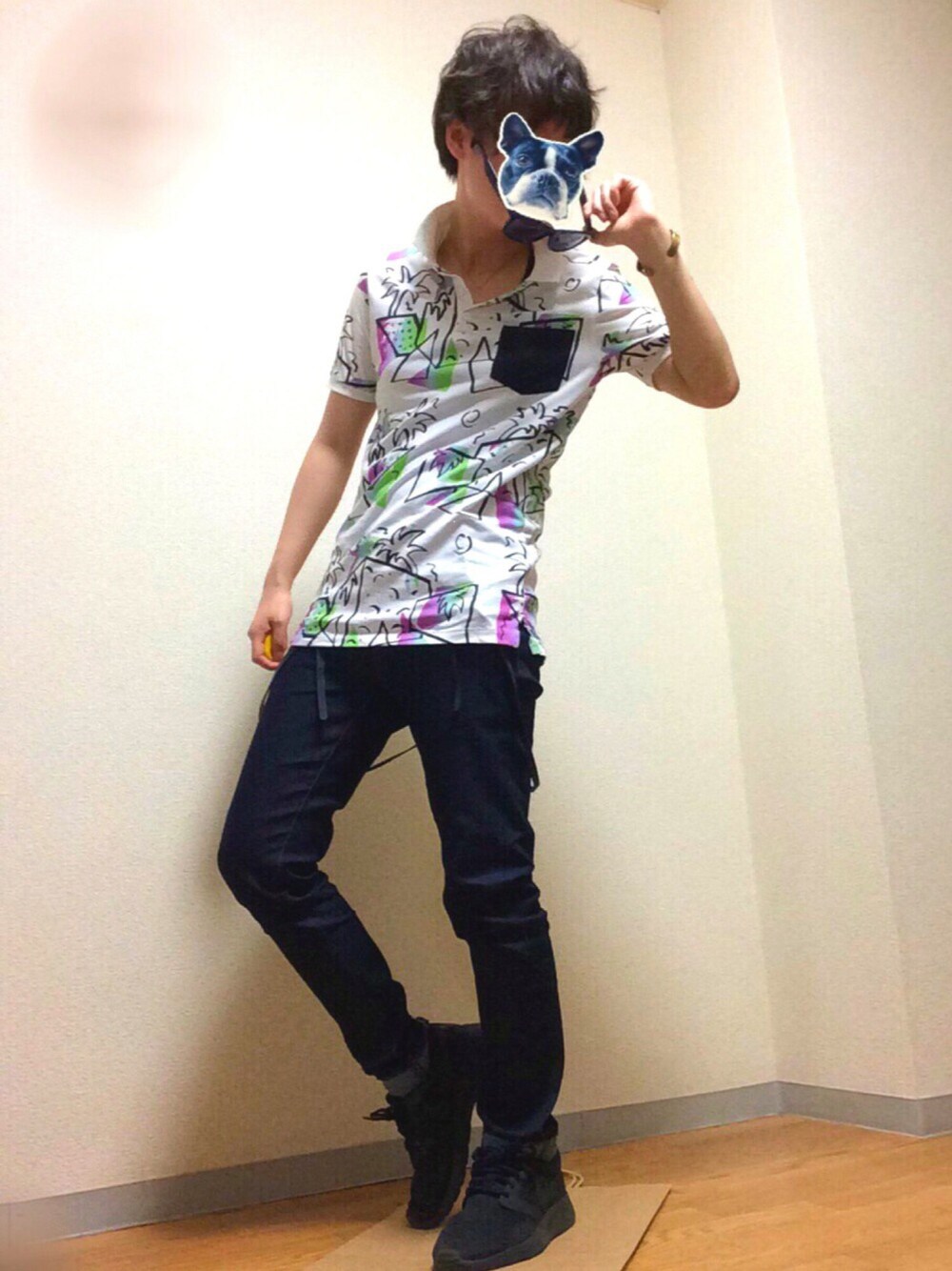 Mooooo‼︎のポロシャツ「ASOS Polo Shirt With All Over Print And Contrast Pockets」を使ったコーディネート