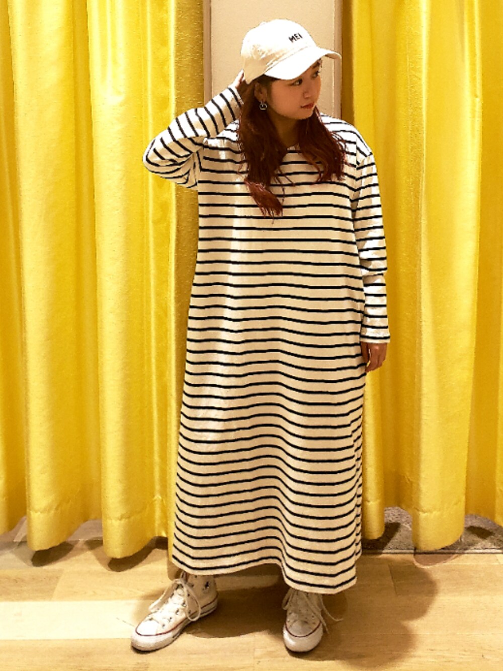 chanmmm(Green Parks)のワンピース「【2020春夏】ボーダーVネックカットワンピース *★」を使ったコーディネート