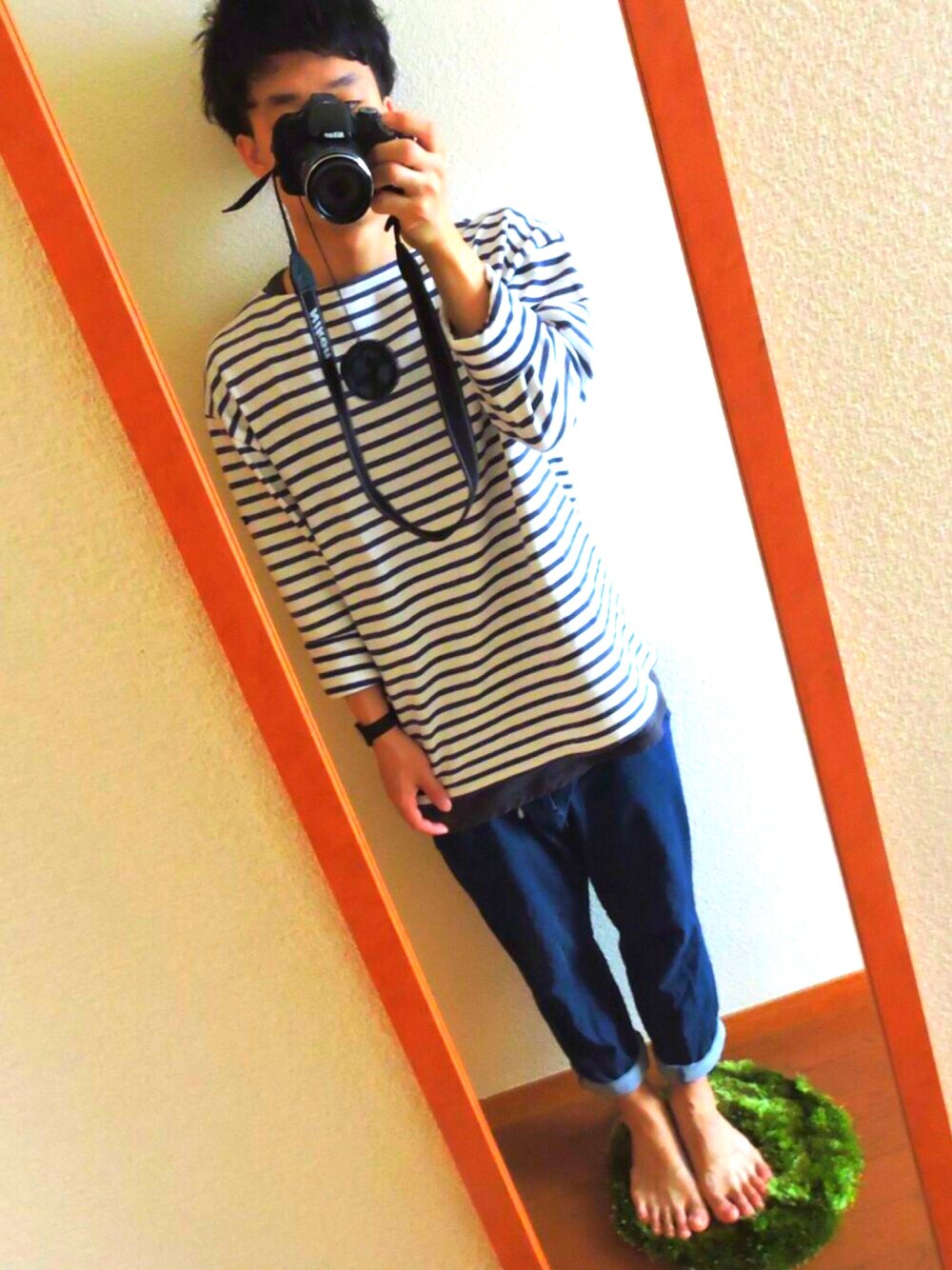 ホワイト系のスニーカーを着用したメンズの夏コーディネートの1枚目の写真