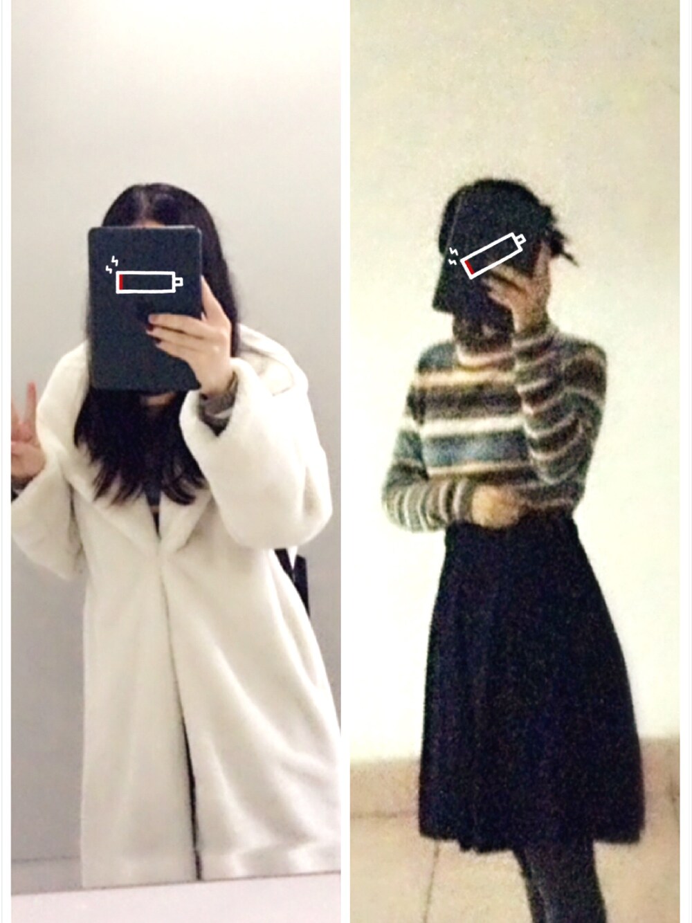 手机坏了太难过了😢 裙长55-60cm的裙子要不要都扔掉好了 真的很难搭配唉 母上的条纹羊绒衫居然还不过时 😄