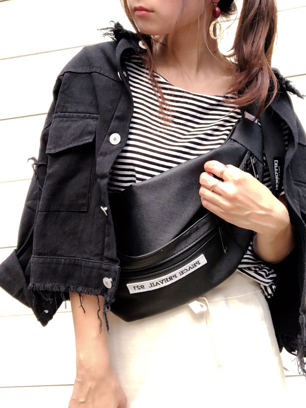 moyooonnのその他アウター「カットオフドロップショルダージャケット」を使ったコーディネート