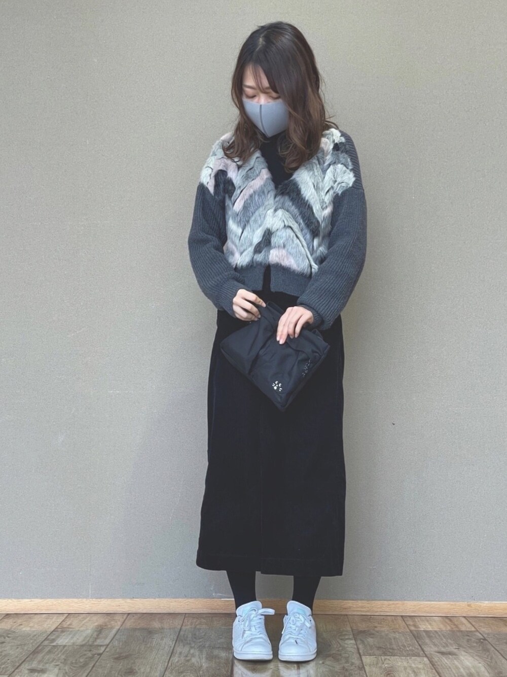 車でショッピングモールデート𓂅 KBFのニットを主役に、その他はシンプルめに〜𖧷𓂅 adidasのスタンスミスは本当に万能👟
