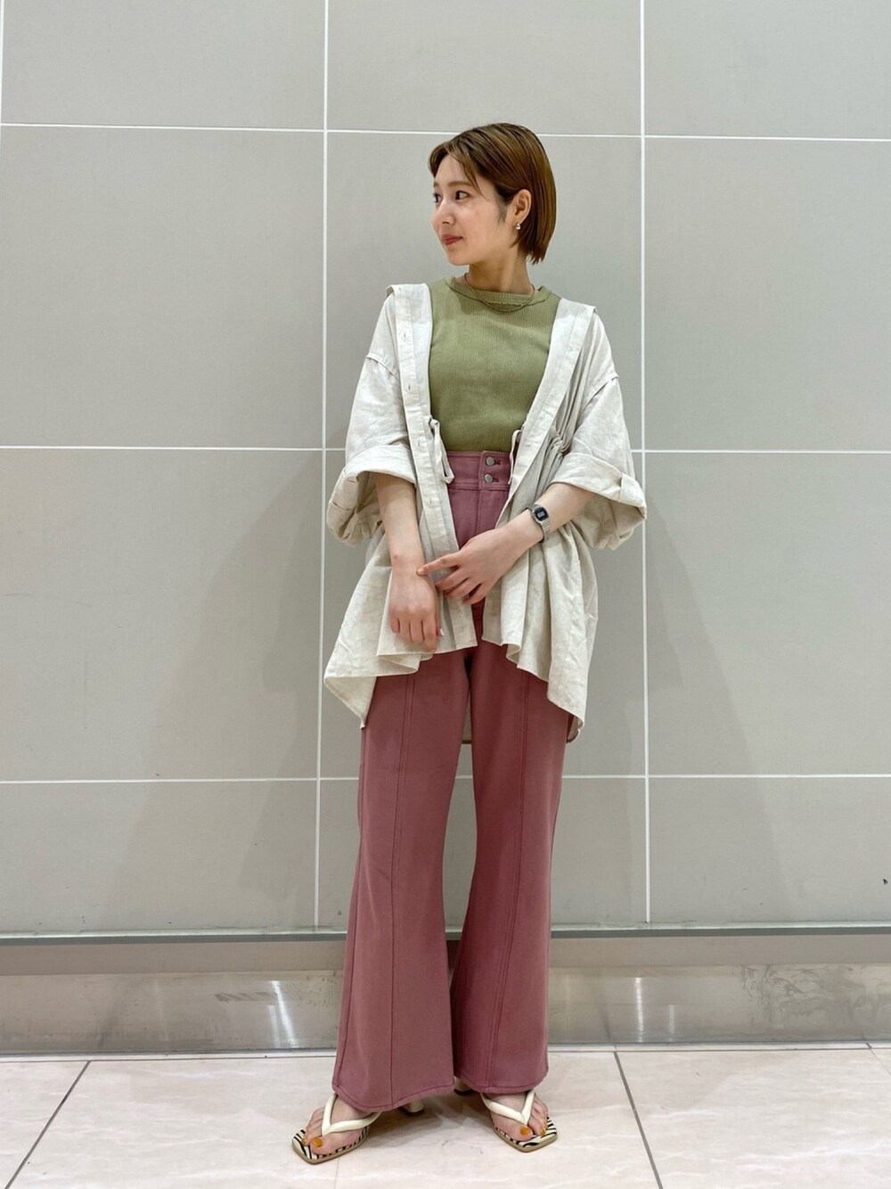 momoco(Kastane姫路店)のシャツ/ブラウス「ノーカラーリネンビッグシャツ」を使ったコーディネート