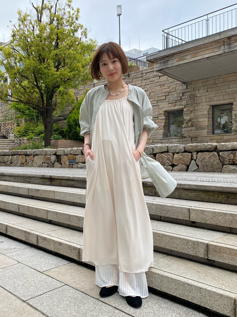 momoco(Kastane姫路店)のワンピース「【サイズ展開あり】カットギャザーキャミワンピース」を使ったコーディネート