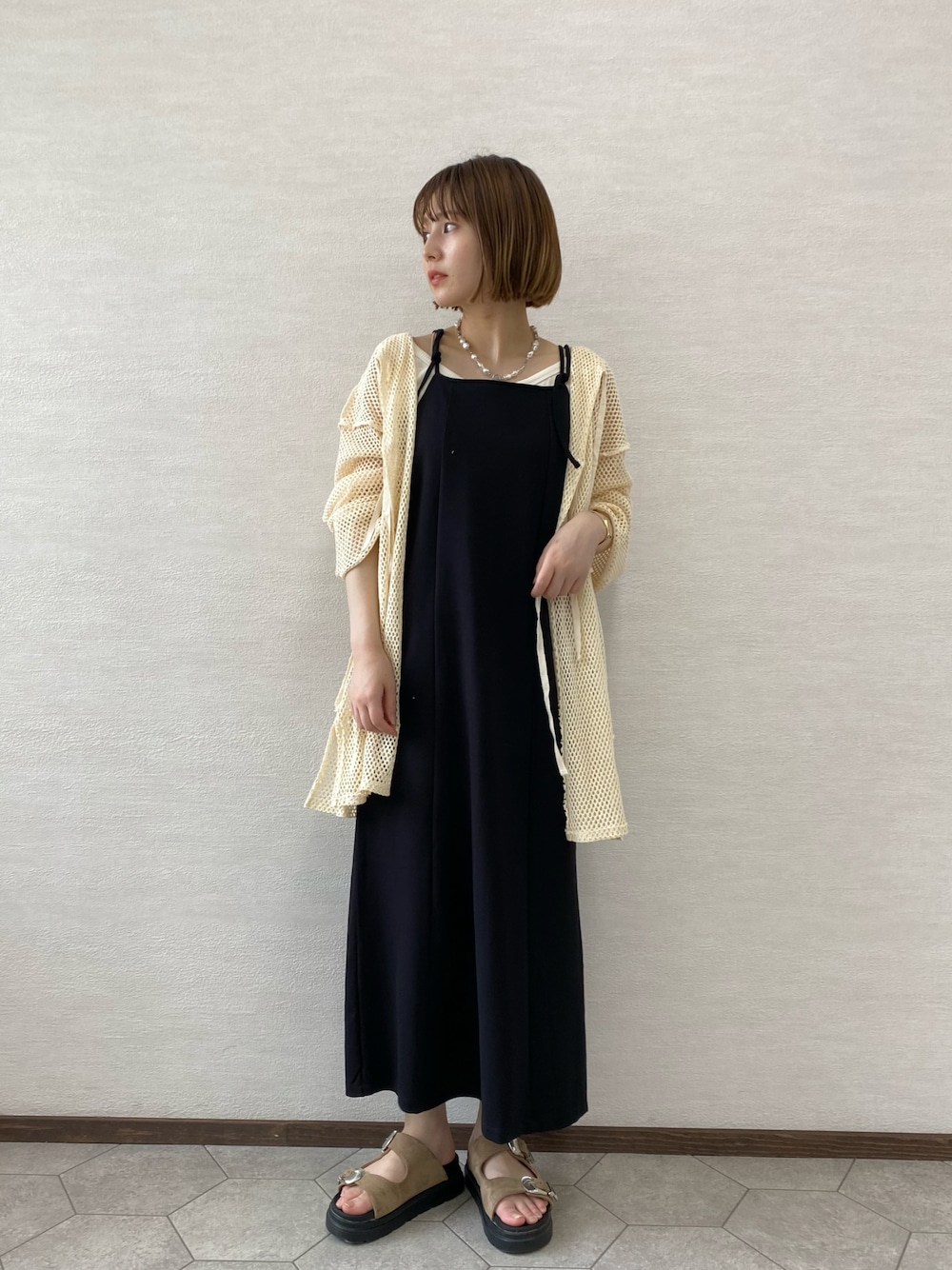 momoco(Kastane姫路店)のワンピース「【新色追加】ポンチキャミワンピース」を使ったコーディネート