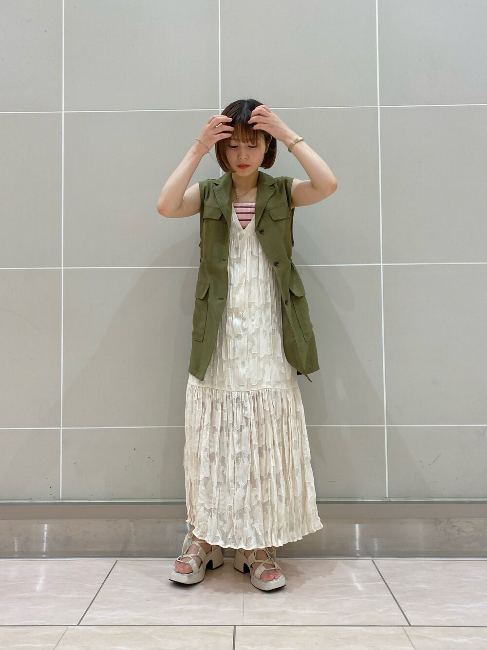 momoco(Kastane姫路店)のワンピース「【低身長向けサイズあり】シアージャガードレースノースリワンピース」を使ったコーディネート