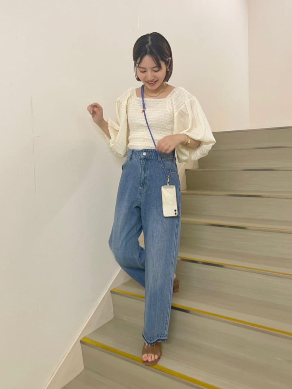momoco(Kastane姫路店)のデニムパンツ「【サイズ展開あり】ハイウエストストレートデニムパンツ」を使ったコーディネート