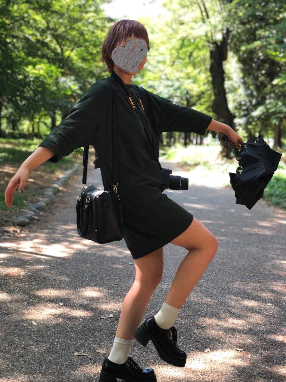 背中のところが空いてて1枚で着れて楽ちん! ※日傘は必需品。笑