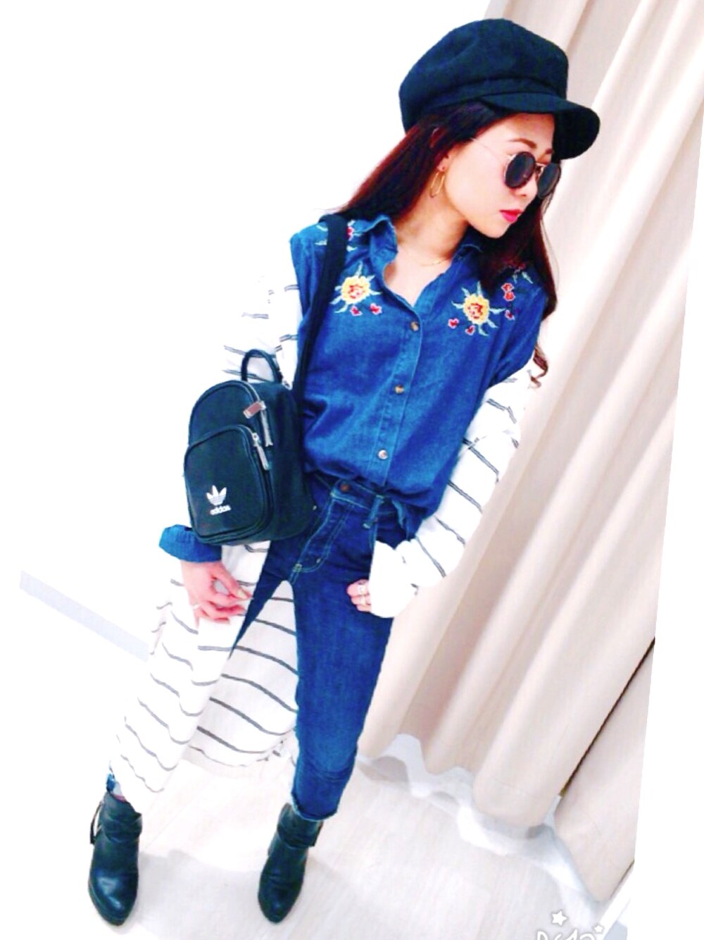見て頂きありがとうございます✿ ❀ デニムコーデです👖 流行りの刺繍で今年っぽく✿ ❀