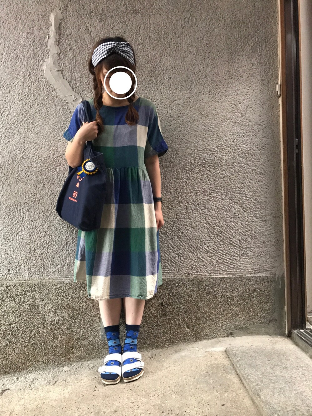 もぴこのワンピース「綿麻ボイル先染めドルマンワンピース」を使ったコーディネート