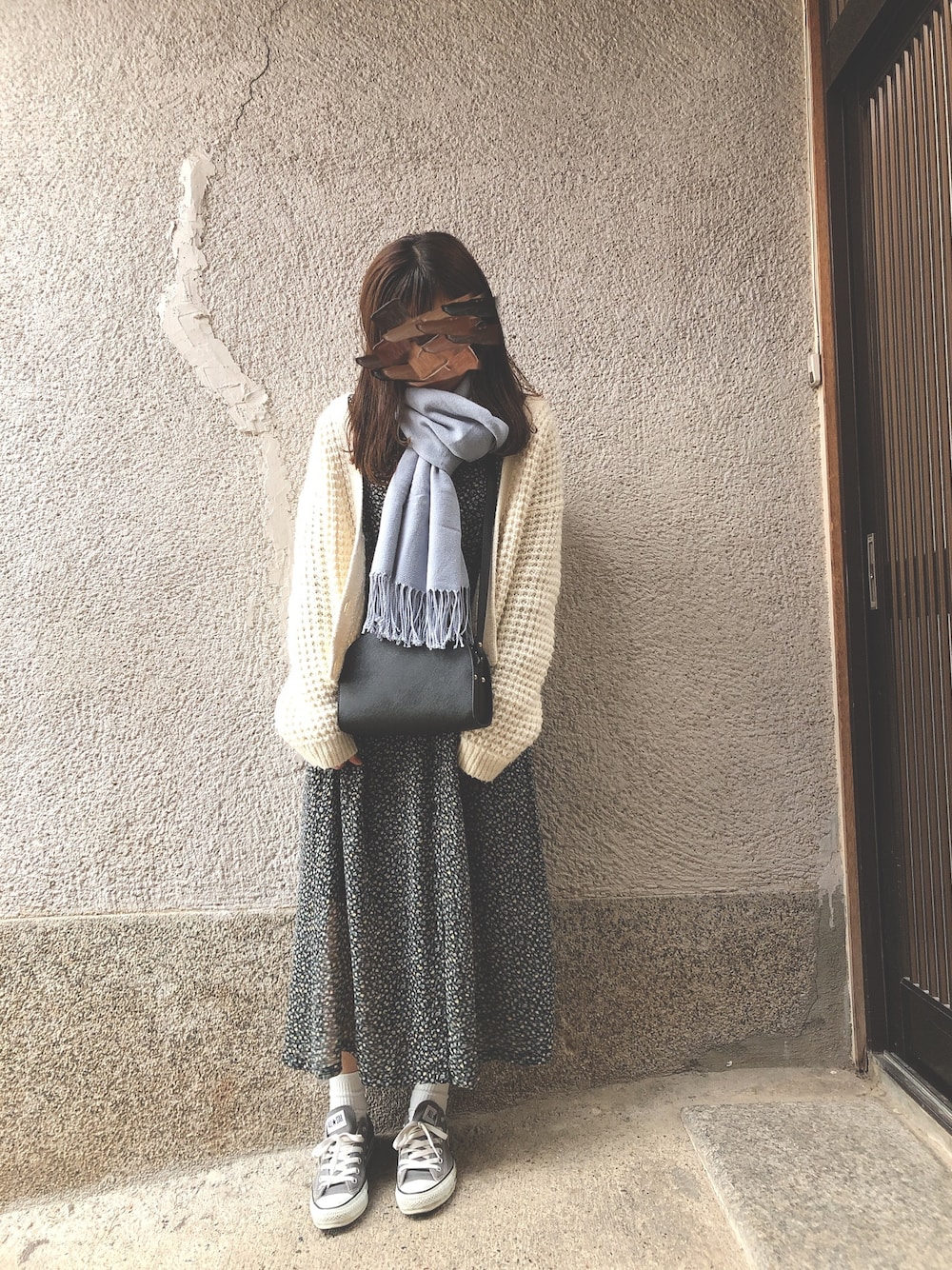 ブルーのマフラーが付けたくて こんなコーデになりました 。 マフラーはGUです. ꙳ ⢁ᐧ ᐧ